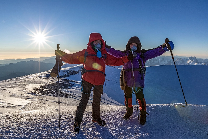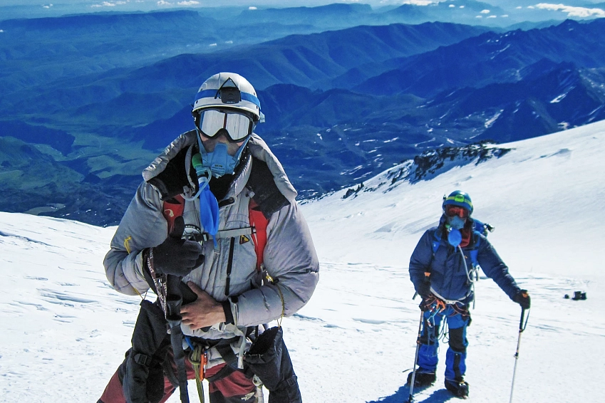 This is the quickest way to summit Elbrus, accessible to anyone. We offer this tour year-round and exclusively in a private format. Such an ascent is easier than any standard climb on Elbrus with acclimatization, as participants do not experience oxygen deprivation. All oxygen equipment elements are duplicated, like in diving, with an oxygen supply enough for 20 hours of breathing, thus completely eliminating equipment issues at altitude.